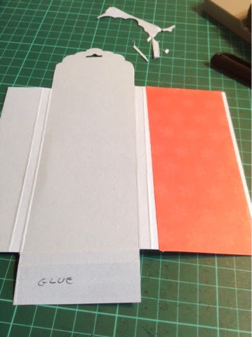 Glue the bottom of your tag box, as shown in photo as well as tape the long length, as shown, and stick down, omce again as shown in the photo.
